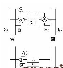在新風(fēng)風(fēng)機(jī)盤管系統(tǒng)或風(fēng)機(jī)盤管系統(tǒng)中。冷媒和熱媒管道在冬季和夏季運行時,采用同一管道系統(tǒng),即冬季采用熱水和回水,夏季采用同一管道輸送冷凍水(和回水)。冷熱源切換在冷水泵房和換熱站進(jìn)行,稱為雙管系統(tǒng)(雙管系統(tǒng))。