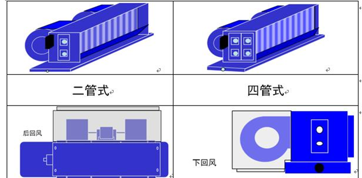 左右判斷模式:面對(duì)風(fēng)機(jī)盤(pán)管出風(fēng)口,冷熱介質(zhì)進(jìn)、出口管留在左側(cè),反之亦然。