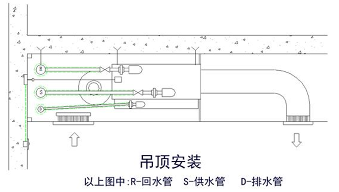 (3)吊裝位置應(yīng)符合室內(nèi)空氣循環(huán)和圖紙要求,吊裝位置與樓板之間應(yīng)有一定距離。