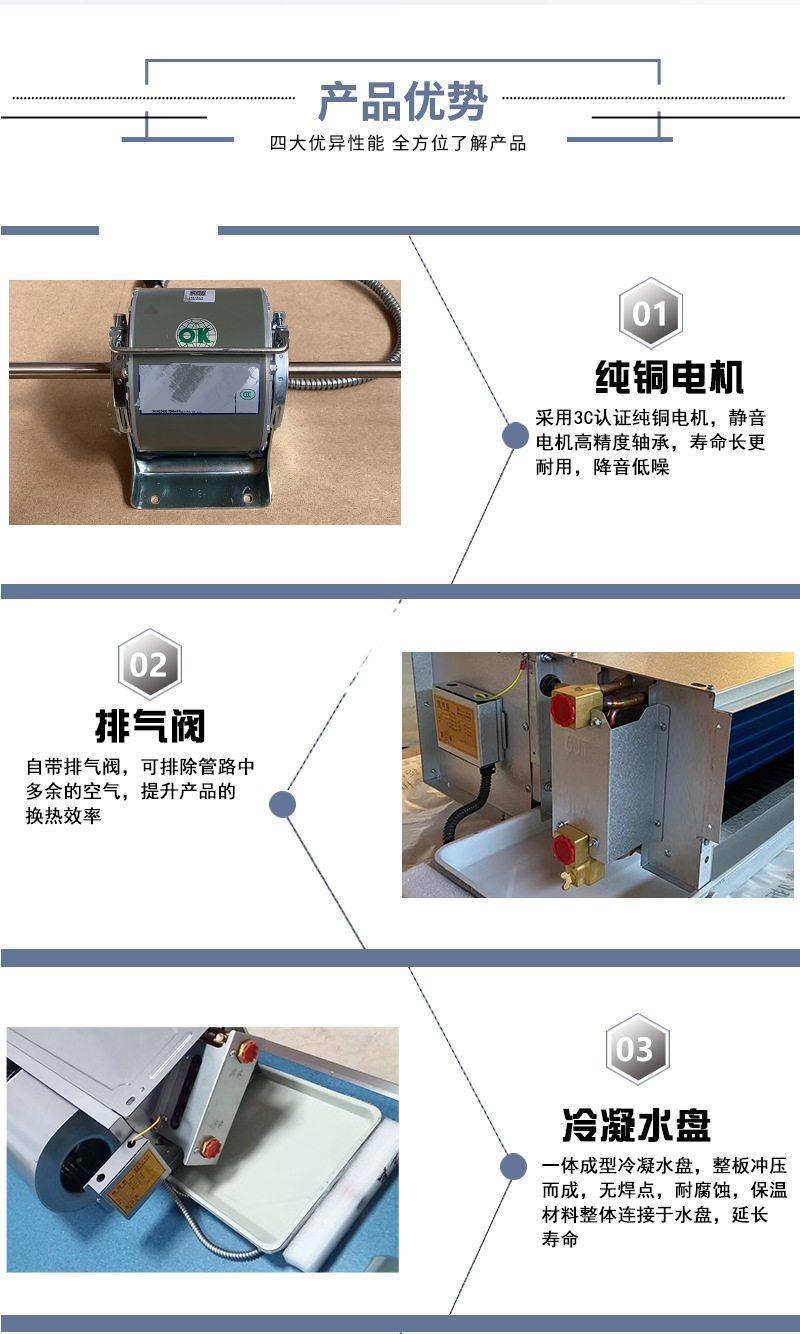風(fēng)機(jī)盤管是中央空調(diào)理想的末端產(chǎn)品,由熱交換器,水管,過濾器,風(fēng)扇,接水盤,排氣閥,支架等組成,